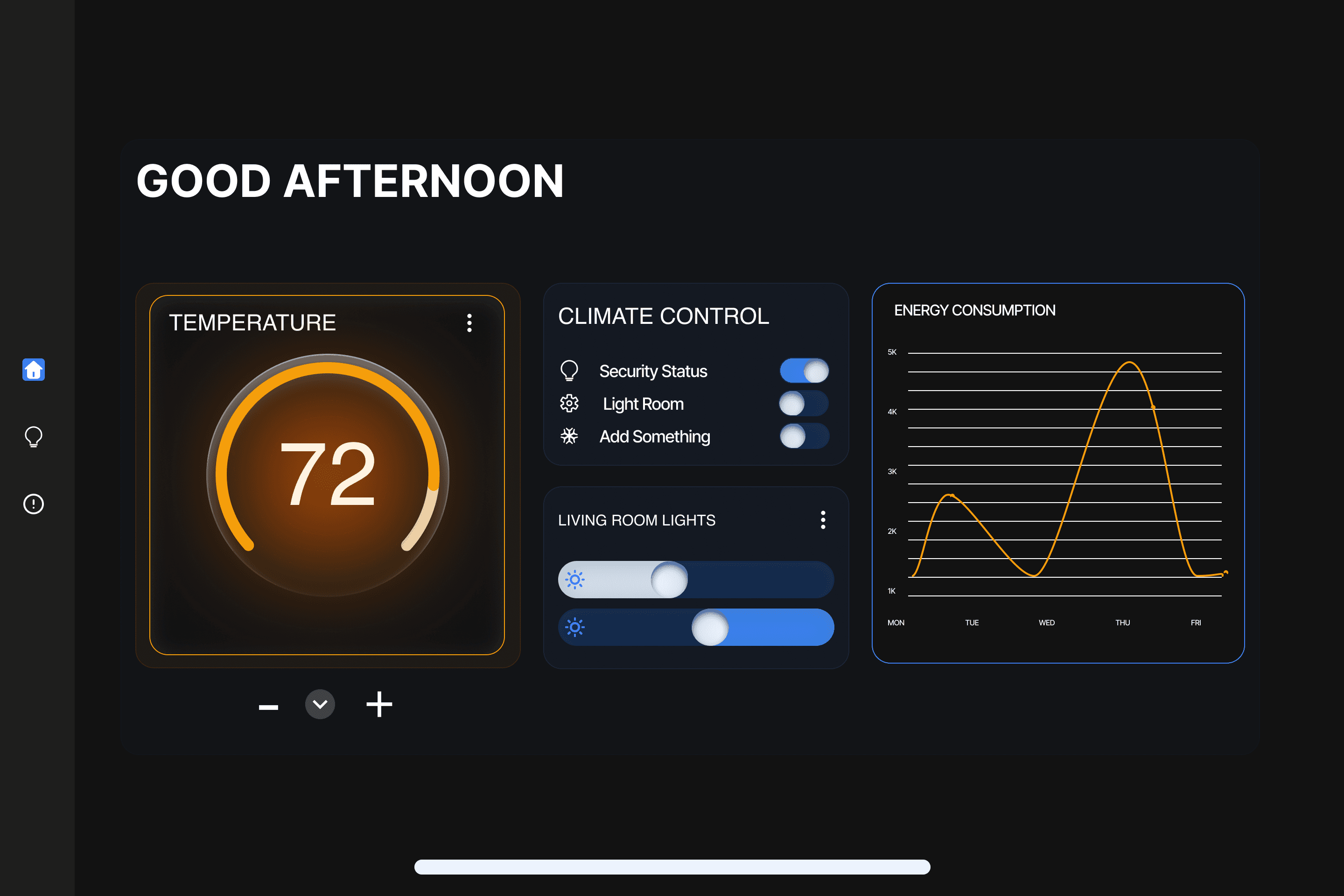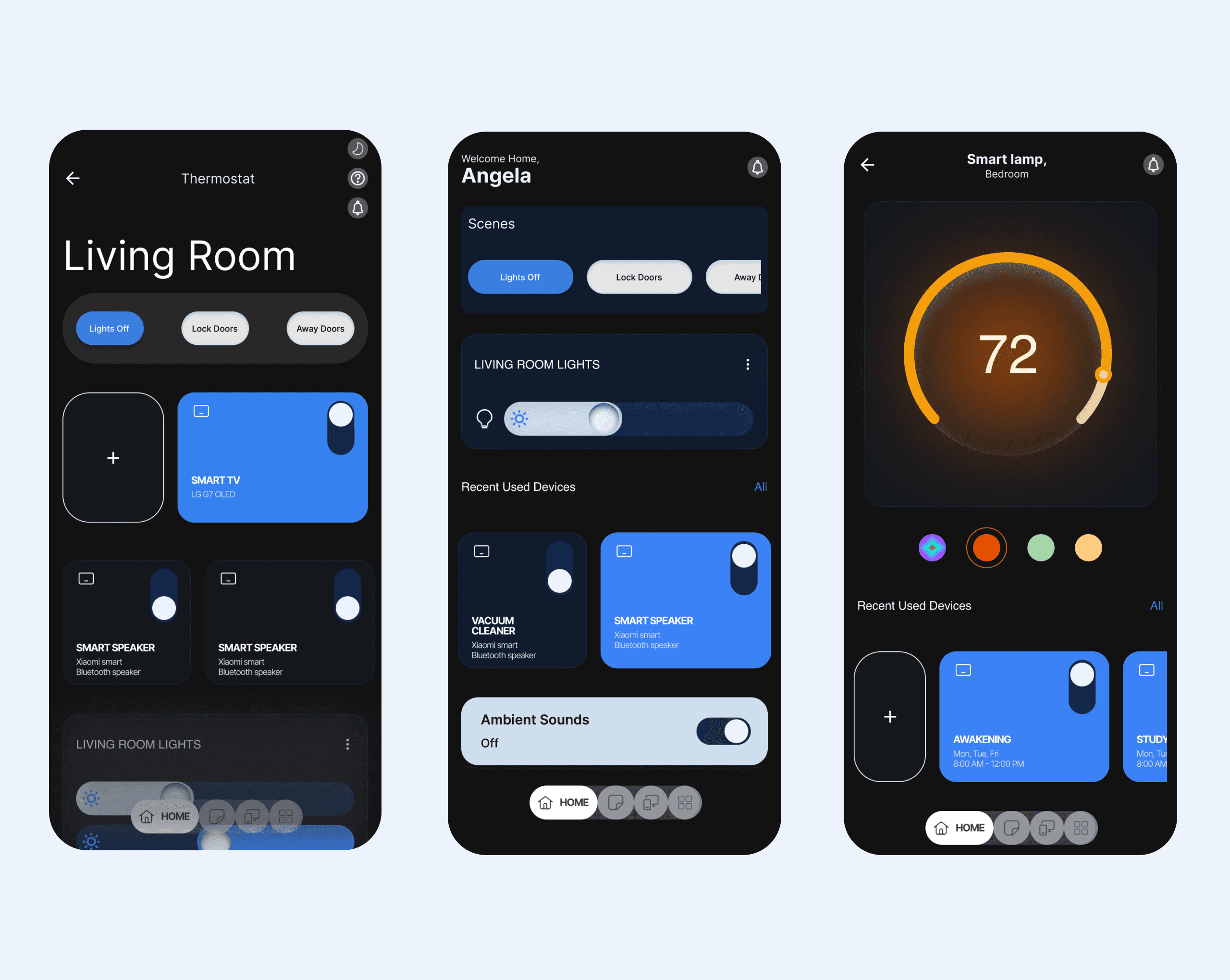 Designing for dark environments presents unique challenges: standard dark greys look washed out on OLED screens, and bright colors can cause glare and blindness at night. As the product expanded from a car dashboard to a home ecosystem, the lack of a unified visual language created fragmentation. I needed a system that could maintain critical legibility in a vehicle traveling at 60mph while feeling elegant enough for a living room wall panel—all while optimizing for battery life and energy consumption.