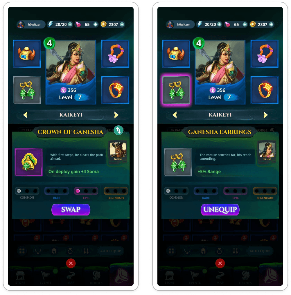 Problem: Managing individual gear for 5+ heroes causes severe menu fatigue and cognitive overload on mobile screens.