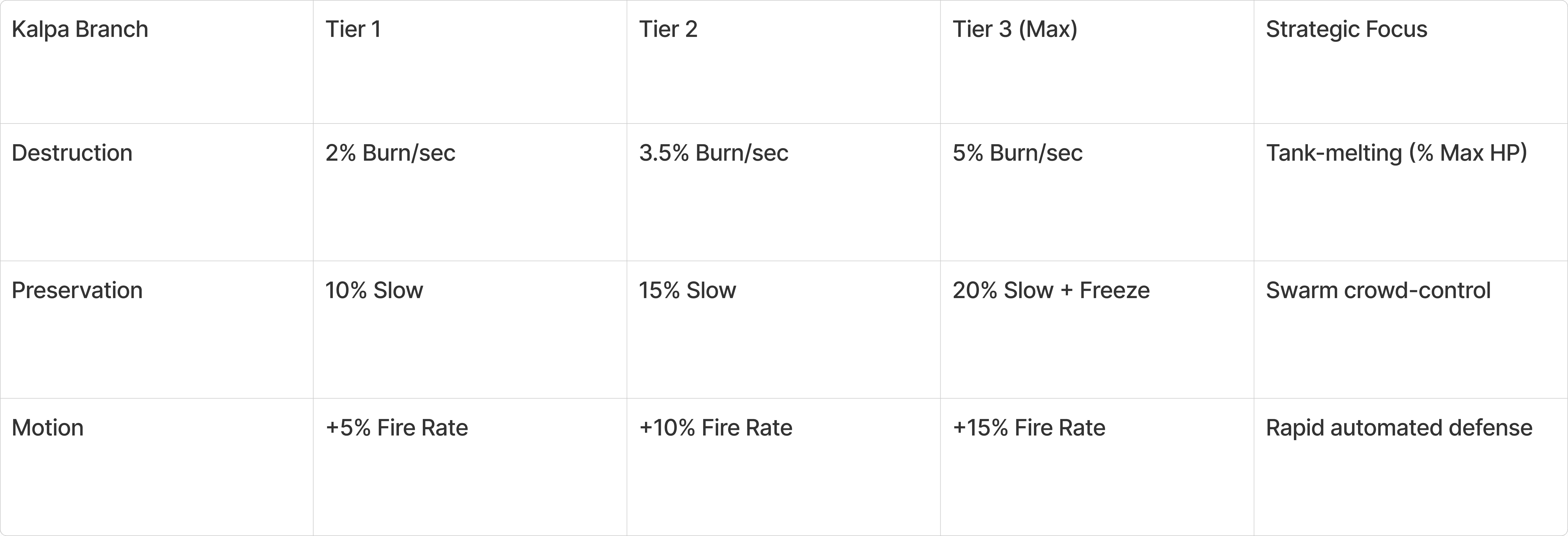Action: Secondary elemental branches unlock, but upgrade costs begin to scale aggressively.